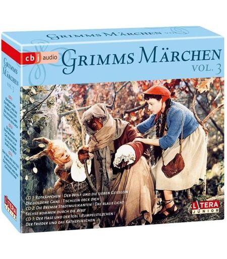 Die legendären Hörspielinszenierungen der LITERA-Reihe sind zurück! Die Märchensammlung der Gebrüder Grimm gehört zu den Standardwerken der deutschsprachigen Literatur und ist weltweit bekannt. LITERA, das ehemalige DDR-Schallplattenlabel, produzierte aufwendig und liebevoll zahlreiche Hörspiele berühmter Märchen-Klassiker, von Rotkäppchen bis Rumpelstilzchen. Mit einer hochkarätigen Sprecher- und Schauspielerbesetzung – u. a. Kurt Böwe, Klaus Piontek, Gunter Schoß, Dagmar Manzel, Angelica Domröse – und Musik. GRIMMS MÄRCHEN BOX 3: CD 1: Rotkäppchen, Der Wolf und die sieben Geißlein, Die goldene Gans, Tischlein deck dich CD 2: Die Bremer Stadtmusikanten, Das blaue Licht, Sechse kommen durch die Welt CD 3: Der Hase und der Igel, Rumpelstilzchen, Der Frieder und das Katherlieschen (3 CDs, Laufzeit: 3h 28) ...
