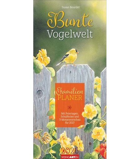 - Wandschmuck und Planungstool in einem: Der Familienkalender mit Vogel-Illustrationen der amerikanischen Künstlerin Susan Bourdet ist ein echter Blickfang! - Das erfolgreiche Konzept für Familienplaner: 5 Spalten mit ausreichend Platz für alle, illustriert mit stimmungsvollen Natur-Impressionen - Immer alle Termine im Blick: Mit der Organisationshilfe im übersichtlichen 22 x 48 cm-Format wird Ihre Planung zum Kinderspiel! - Ein schöner Kalender für Familien und Vogelfreund:innen, die den Überblick behalten wollen: Mit Schulferien und zarter Aquarell-Kunst für Naturliebhaber - So macht Organisieren Spaß: Die Familien-Wandkalender von Weingarten aus dem Athesia Kalenderverlag ...