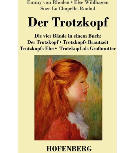 Emmy von Rhoden, Else Wildhagen, Suze La Chapelle-Roobol: Der Trotzkopf / Trotzkopfs Brautzeit / Trotzkopfs Ehe / Trotzkopf als Großmutter. Die vier Bände in einem Buch Der Trotzkopf: Emmy von Rhoden. Erstdruck 1885. Trotzkopfs Brautzeit: Else Wildhagen. Erstdruck: 1894. Trotzkopfs Ehe: Else Wildhagen. Erstdruck: 1895. Trotzkopf als Großmutter: Suze La Chapelle-Roobol. Erstdruck: 1905. Aus dem Holländischen übersetzt von Anna Herbst. Vollständige Neuausgabe. Herausgegeben von Karl-Maria Guth. Berlin 2016. Umschlaggestaltung von Thomas Schultz-Overhage unter Verwendung des Bildes: Pierre-Auguste Renoir, Mädchen mit langem Haar im Profil, 1890. Gesetzt aus der Minion Pro, 11 pt. ...
