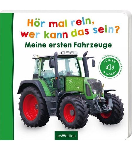 Wie klingt der Traktor? Tuck! Tuck! Bauer Heinrich fährt mit seinem grünen Traktor und der Wassertränke auf die Weide zu den Kühen. Auf der nächsten Seite ist die Feuerwehr bei einem Einsatz zu sehen. In Windeseile fahren sie zum Unfallort. Tatütata! Tatütata! Und wie klingen Bagger, Auto und Rettungsfahrzeug? Berühre einfach die Fühlteile und schon ertönt das passende Fahrzeuggeräusch. Das Fühlbuch mit vielen hochwertigen Fotos und Soundmodulen begeistert schon die Kleinsten und macht das gemeinsame Vorlesen zum interaktiven Erlebnis für alle Sinne. Fühlen, hören und staunen Auf jeder Doppelseite wird eine Fahrzeugszene mit anschaulichen Fotos und einem kurzen Sachtext vorgestellt. Das Fühlelement lädt zum Entdecken ein und beim Darüberstreichen wird das passende Geräusch ausgelöst. Das ist nicht nur spannend, sondern fördert auch die Hand-Auge-Koordination und das Sprechen. Das Fühlbuch mit Sound eignet sich für Kinder ab 6 Monaten. Hoher Wiedererkennungsfaktor: Die hochwertigen Fotos sorgen für ein schnelles Erkennen der Fahrzeuge und Gegenstände. • Mit Soundmodulen: Die Geräusche lassen sich kinderleicht beim Fühlen auslösen. • Selbst aktiv werden: Die verschiedenen Fahrzeuge entdecken, das eindeutige Geräusch hören und nachahmen • Alle Sinne kommen zum Einsatz: Das Babybuch ab 6 Monaten fördert die Motorik, die Lautbildung und animiert zum Spracherwerb. • Für empfindliche Kleinkinderohren: Sound wird in angenehmer Lautstärke wiedergegeben • Ton abschaltbar: Dank des praktischen An- und Ausschalters auf der Buchrückseite lassen sich die Geräusche ein- und ausschalten. • Batterien auswechselbar: Die Bücher enthalten handelsübliche Knopfzellenbatterien vom Typ LR 1130 mit je 1,5 V, die sich problemlos auswechseln lassen. • Geprüfte Qualität: Das Buch unterliegt strengen Sicherheitsanforderungen und regelmäßigen Qualitätskontrollen nach europäischer Spielzeugsicherheitsrichtlinie. ...