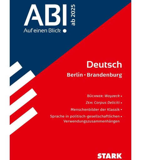 Binding : paperback, Label : STARK Abi - auf einen Blick! Deutsch Berlin/Brandenburg ab 2025, medium : paperback, publicationDate : 2024-07-01, releaseDate : 2024-06-28, languages : german, ISBN : 3849059855 ...