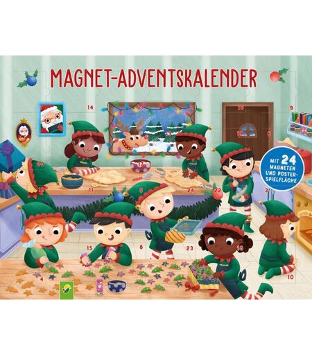 Die entspannte Wichtel-Variante für Eltern und Kinder: Ohne Vorbereitung jeden Tag ein Türchen öffnen und losspielen! • Der besondere Adventskalender mit lustigen Weihnachts-Wichteln • Mit 24 wiederverwendbaren Magneten und großem magnetischem Poster zum Spielen (Maße 380 x 297 mm) • Liebevoll und farbenfroh illustriert von Ed Myer • Regt die Fantasie an und lädt Kinder zum Erzählen ein • Mit Perforation zum Aufhängen • Ein zauberhaftes Geschenk für Kinder ab 3 Jahren In diesem Advent ziehen die Wichtel bei dir ein! Öffne täglich ein Türchen und finde einen schönen Magneten, den du auf das Poster mit der magnetischen Spielfläche setzen kannst. Jeden Tag wird das Bild voller und du kannst mit immer mehr Magneten auf dem Poster spielen und Geschichten erzählen . Was schnitzt der kleine Wichtel aus dem Holzstück? Wo kann der Adventskranz aufgehängt werden? Was hält der Weihnachtsmann in der Hand? Was verbirgt sich hinter der Wichteltür? Dieser Adventskalender beinhaltet 24 stabile Magnete , die in einer stabilen Verpackung hinter kleinen Türchen verstaut sind. Zusätzlich gibt es ein großformatiges magnetisches Poster (380 x 297 mm), das die trubelige Wichtelwerkstatt zeigt. Dort können die Magnete ganz nach Belieben angeordnet und die Szene belebt werden. Bis alle fleißigen Wichtel versammelt sind und das Bild mit Geschenken, einem kleinen Rentier und vielem mehr gefüllt ist. Ideal für alle Eltern, Omas, Opas, Tanten und Onkel, die einen kreativen Adventskalender verschenken wollen, der die Fantasie des Kindes anregt und die Interaktion und Kommunikation fördert Achtung: Nicht geeignet für Kinder unter 3 Jahren. Erstickungsgefahr wegen verschluckbarer Kleinteile! ...