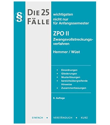 Karl-Edmund Hemmer;Achim Wüst - Die 25 wichtigsten Fälle nicht nur für Anfangssemester. ZPO 2 / Zwangsvollstreckungsverfahren: Einordnung - Gliederungen - Musterlösungen - ... - ... (Skript Zivilrecht) (Skripten - Zivilrecht) - Preis vom 18.09.2025 05:07:
