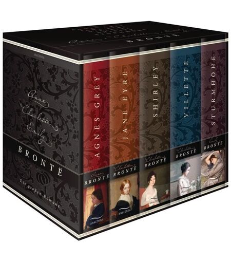 "Die Brontë-Schwestern haben in ihrer leider nur sehr kurzen Schaffensphase einige zeitlose Klassiker geschaffen, darunter Meisterwerke wie ""Jane Eyre"" oder ""Sturmhöhe"". Diese wunderschöne Geschenkkasse umfasst die großen Romane der Brontë-Schwestern Anne, Charlotte und Emily: Agnes Grey - Jane Eyre - Villette - Shirley - Sturmhöhe. Sensibel und mit ergreifender Unmittelbarkeit erzählt Anne Brontë (Bronte, Anne 1820 - 1849) die jüngste der drei weltberühmten Brontë-Schwestern, die Geschichte einer jungen Frau: Um des Geldes willen verdingt sich die intelligente und empfindsame Agnes Grey, Tochter eines verarmten Landpfarrers, als Gouvernante in reichem Hause. Schon bald gerät sie mit ihren naiven Vorstellungen in die Mühlen zwischen verzogenen Kindern und allzu nachgiebigen Eltern, und all ihre Träume und Hoffnungen scheinen sich in Luft aufzulösen. Anne Brontë hat ihr Romandebüt, erschienen 1847, auf autobiografischen Erfahrungen aufgebaut. Sie selbst arbeitete wie ihre Titelheldin als Gouvernante, bis sie sich 1845 ganz dem Schreiben zuwandte. Charlotte Brontës Jane Eyre gilt als eine der facettenreichsten und ergreifendsten Frauenfiguren der Weltliteratur. Nach einer freudlosen Kindheit verliebt sich die junge Titelheldin in den herrischen und egozentrischen Mr. Rochester, in dessen Haus sie als Erzieherin Anstellung gefunden hat. Auch der Hausherr fühlt sich zu der intelligenten Frau hingezogen, doch hütet er ein schreckliches Geheimnis, das ihre seltsame Liebe zueinander unweigerlich überschattet. Die aufwühlende Melodramatik des Stoffs machte Brontës 1847 erschienenen Roman zu ihrem erfolgreichsten Werk. Im Mittelpunkt von Charlotte Brontës drittem großen Roman steht erneut eine bewegende Frauenfigur: Nach einer glücklos unsteten Jugend findet die unscheinbare Lucy Snowe in der Fremde Anstellung im Mädchenpensionat der kaltherzigen Madame Beck. Als ihre aufkeimende Liebe zum jungen Schularzt Dr. John unerwidert bleibt, droht die Einsamkeit sie zu erdrücken. Doch dann entdeckt Lucy ihre Zuneigung zu dem eigenwilligen Literaturprofessor Paul Emanuel. 'Villette' (1853) ist der letzte zu Lebzeiten erschienene Roman Brontës, die zuvor mit 'Jane Eyre' einen grandiosen Erfolg feierte. Neben dem grandiosen viktorianischen Sittengemälde 'Jane Eyre', mit dem Charlotte Brontë zwei Jahre zuvor schlagartig berühmt wurde, ist 'Shirley', 1849 erschienen, der zweite bedeutende Roman der großen englischen Dichterin über eine außergewöhnliche Frauenfigur. Vor dem Hintergrund der Arbeiterunruhen zur Zeit der wirtschaftlichen Depression am Beginn des 19. Jahrhunderts erzählt er die aufrüttelnde Geschichte der vermögenden und charakterstarken Gutsherrin Shirley Keeldar, die sich um der wahren Liebe willen entschlossen über die erstarrten Konventionen und den Standesdünkel ihrer Zeit hinwegsetzt. Auf einer Anhöhe inmitten der rauen Landschaft des englischen Yorkshire liegt das Anwesen 'Wuthering Heights', dem Wind schutzlos ausgesetzt, der hier strenger als... ...