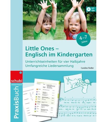"Ein Praxisbuch für den Anfangsunterricht in Englisch, mit 2 Audio-CDs Mit Spielen, Versen, Liedern, Gedichten und Geschichten spielerisch Englisch lernen. Die englische Tradition bietet einen reichhaltigen Schatz an einfachem und fröhlichem Kulturgut, der sich bestens eignet, Englisch als erste Fremdsprache zu vermitteln. Mit „Little Ones"" fällt das Unterrichten auch dann leicht, wenn Englisch nicht die eigene Muttersprache ist oder wenig Lehrerfahrung vorhanden ist. Jede der 40 praktischen Unterrichtseinheiten beginnt mit einem Einstieg. In diesem wird bereits bekannter Wortschatz eingesetzt und wiederholt oder der Lernstand überprüft. Die Kinder sind aktiv am Hören, Nachsprechen und Sprechen, sie singen, spielen und malen, aber es wird weder gelesen noch geschrieben. Die 40 Einheiten lassen sich über 4 Semester verteilen. Somit verfügt beim Einstieg in die Schule jedes Kind über ein sicheres Sprachgefühl. Dem Buch liegen 2 Audio-CDs bei: Lieder als Playbackversion zum Mitsingen (CD 1) und als Vollversion zum Zuhören oder Abspielen im Hintergrund (CD 2). Inhalt: kurzer theoretischer Einstieg, Einsatzhinweise, 40 Schritt-für-Schritt-Unterrichtseinheiten, Liedersammlung mit Noten und Akkorden für die Begleitung mit Gitarre oder Klavier, Kinderverse und Sprechreime, Spiele und Spielvorschläge, Geschichten und Bücherempfehlungen, Wörterverzeichnis. 152 Seiten A4, inkl. 2 Audio-CDs mit über 60 Titeln. Geeignet für : Kindergarten, Vorschule, erste Schuljahre, Englisch als erste Fremdsprache Rezensionen " ...