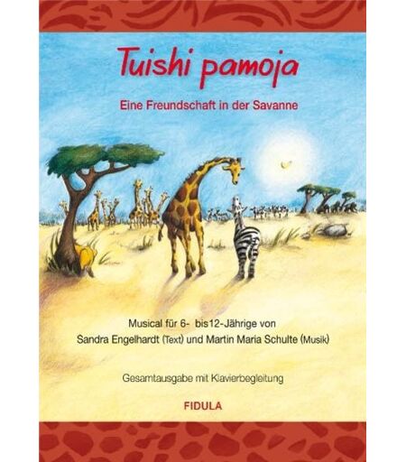 Tuishi pamoja (sprich: tuischi pamodscha) ist Swahili und bedeutet „Wir wollen zusammen leben“. Machen Streifen wirklich doof? Und stimmt es, dass man mit langhalsigen Tieren sowieso nicht vernünftig reden kann? Wichtige Fragen für das Giraffenkind Raffi und das kleine Zebra Zea. Seit Jahren leben ihre Herden nebeneinander, aber denkt ihr, sie würden miteinander reden? Zum Glück sind da noch die pfiffigen Erdmännchen. Und der Angriff der Löwen, der ausnahmsweise mal was Gutes bewirkt. Tuishi pamoja – eine Geschichte über Vorurteile, Freundschaft und Toleranz mit afrikanisch-grooviger Musik, zu der man sich einfach bewegen muss! Aufführungsdauer: ca. 45 Minuten Das Aufführungsrecht ist direkt über den Verlag zu beziehen. Eine CD (ISBN 978-3-87226-890-7) mit allen Texten, Songs und Playbacks gibt es für EUR 16,80 direkt über den Buchhandel zu bestellen. ...