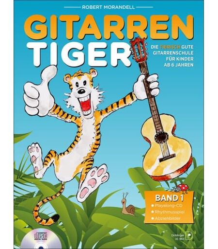 Der Gitarrentiger bietet Kindern einen spielerischen und gleichzeitig fundierten Zugang zum Gitarrenspiel und legt den Grundstein für eine gute Instrumentaltechnik. Schritt für Schritt lernen Kinder die Technik der Gitarre in all ihrer Vielfalt und all ihren Möglichkeiten. Ein besonderes Anliegen des Gitarrentigers ist dabei der kreative und ganzheitliche Zugang zum Gitarrenspiel. Melodiespiel und Liedbegleitung werden zuerst getrennt erlernt und schließlich in stilistisch abwechslungsreichen Solostücken gemeinsam verwendet. Rhythmusbausteine (unterlegt mit Rhythmussprache) lassen sich mittels Rhythmuskärtchen legen und beliebig kombinieren. In kurzen Improvisationen experimentieren Schüler mit Tonmaterial und Akkorden und können selbst kleine Stücke komponieren. Das Begreifen von Tönen und Noten gelingt über mehrere Sinneskanäle durch Spielen, Lesen, Singen, Selbstschreiben und Improvisieren. Kurze Übungen trainieren die Technik und bereiten auf die Lieder vor, deren lustige Texte zum Mitsingen einladen – denn der Spaß am Musizieren, Lernen und Können steht stets im Mittelpunkt. Aus der Unterrichtspraxis entwickelt, daher einfach und anschaulich erklärt, ist der Gitarrentiger für den Einzel- und Gruppenunterricht geeignet! ...