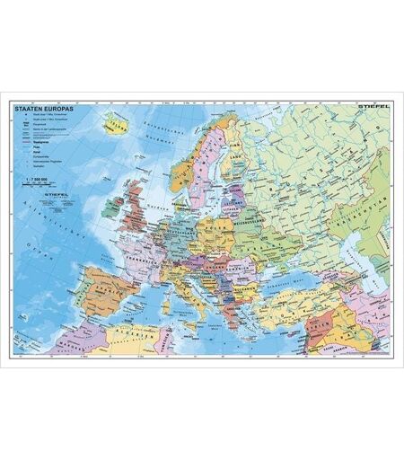 Wandkarte / Poster - beschreib- und abwischbar - extrem reißfest - Staaten Europas und Nachbarländer mit Relief - wichtigste Städte, Flüsse und Gewässer - Europastraßen (ohne Numerierung) - Seehäfen und internationale Flughäfen im enthaltenen Ortsnetz - Tiefenschichten des Meeres - Beschriftung in deutscher Sprache - Hauptstädte zusätzlich in der jeweiligen Landessprache ...