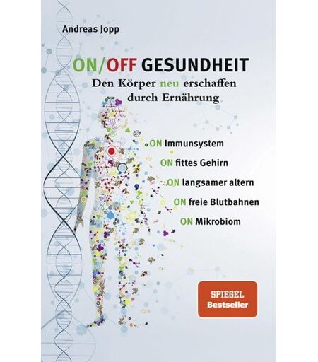 "ON/OFF Gesundheit. Den Körper neu erschaffen durch Ernährung. Holen Sie sich einen leistungsfähigeren, besseren Körper zurück. ++ Das Immunsystem scharf stellen. ++ Das Gehirn verschnellern und vor Abbau schützen. ++ Um ein Jahrzehnt langsamer altern. ++ Die Gefäße jung halten und wieder gesund regenerieren. ++ Einen Hybrid-Motor von Billionen Fremdzellen dazuschalten. All das ist kein Traum. Mit Biostoffen hat sich das über Millionen Jahre entwickelt. Ihr Körper ist eine perfekte biochemische Fabrik. Biostoffe bestimmen Ihre tägliche Leistung und wie gut Sie sich reparieren können. Denn Ihr Körper ist eine riesige Baustelle. Ständig im Auf- und Abbau.In jedem Alter. Die neueste Forschung zeigt: Unser Regenerationsmodus übertrifft alles, was die Medizin- und Pharmaindustrie je entwickeln könnte. Ernährung ist nicht die kleine unbedeutende Stiefschwester, sondern die bestimmende Kraft Ihrer biochemischen Fabrik. Aktivieren Sie die Löschtaste für Schäden, damit Ihr Körper sich immer wieder gesund regeneriert. Erfahren Sie mehr über das ungeahnte Potenzial der Ernährung. Schalten Sie Billionen von Fremdarbeitern dazu: Ihr Mikrobiom. Nur 1 % Ihres genetischen Materials sind menschlich. Nur 43 % der Zellen im Körper sind Ihre eigenen Zellen. Tatsächlich sind Sie ein Bakterien-Mensch-Hybrid. Und dieses faszinierende Mikrobiom will gefüttert werden. Dann arbeitet es optimal für Sie. Sonst wendet es sich gegen Sie. Das ON/OFF System des Körpers Biostoffe haben Andockstellen im Körper, die sich über Millionen Jahre entwickelt haben. Diese ON/OFF - Schalter sind das ungeahnte Potential der Ernährung. Der Medizinjournalist Autor Andreas Jopp zeigt verständlich und spannend, welche Biostoffe ON-Schalter umlegen können und welche OFF-Schalter Ihre Biomaschine herunterfahren, Sie genetisch schneller altern lassen und die Reparatursysteme blockieren. Er bezeichnet sich selbst als ""ungläubig"" und will immer zuerst Studien sehen. Möchte für sich und seine Leser wissen, was sich wirklich lohnt. Was bewiesen ist. Und wie man es für sich leicht umsetzen kann. Dieses Buch wird Ihren Blick auf ihren Mikrokosmos Körper für immer verändern. " ...