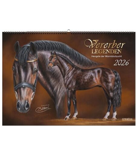 Großartige Hengste, klangvolle Namen – den Stars der Pferdezucht wird mit diesem Kalender ein Denkmal gesetzt.2026 präsentiert er die Hengste Capitol I, Damon Hill , Argentinus, Don Schufro, Capistrano, Foundation, Belissimo M, Easy Game, FS Champion de Luxe, Landadel, Jack The Robin xx und For Romance I. Die ausdrucksstarken Gemälde der Künstlerin Christina Bötzel begeistern gleichermaßen Jung und Alt. Ihr Detailreichtum, die einzigartige Authentizität und intensive Farbkraft zaubern jedem Züchter und Pferdefan ein Leuchten ins Gesicht. Hengstbilder der Kalenderedition wurden bereits mehrfach mit internationalen Kunstpreisen wie dem „Amazing Art Award“ ausgezeichnet. Mit interessanten Begleittexten und den Pedigrees aller abgebildeten Hengste auf der Rückseite eines jeden Kalenderblatts. Making-of-Fotos geben zudem einen Einblick in die aufwändige Entstehung der Gemälde. ...