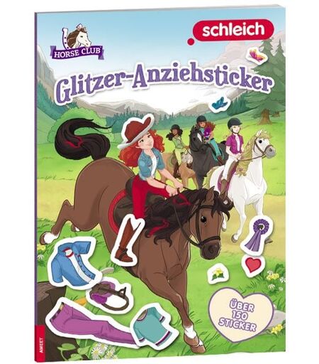Glitzer-Stickerspaß mit den Horse Club-Mädchen Anziehen mit Stickern Funkelnde Sticker ergänzen die attraktiven Outfits der HORSE CLUB Freundinnen! Vielen abwechslungsreiche und wieder ablösbare Sticker mit Glitzereffekt ermöglichen verschiedenste Varianten, die vier Mädchen vom HORSE CLUB anzuziehen oder ihre Outfits zu verschönen. Auch ihre vierbeinigen Lieblinge können funkelnde Verzierungen erhalten. Tauche ein in die bunten Szenen aus den HORSE CLUB Geschichten und gestalte die Seiten mit deinen Stickern. Das Buch eignet sich hervorragend für Pferdefans ab 6 Jahren und garantiert unvergesslichen Stickerspaß mit viel Glitzer! © schleich® 2024 ...