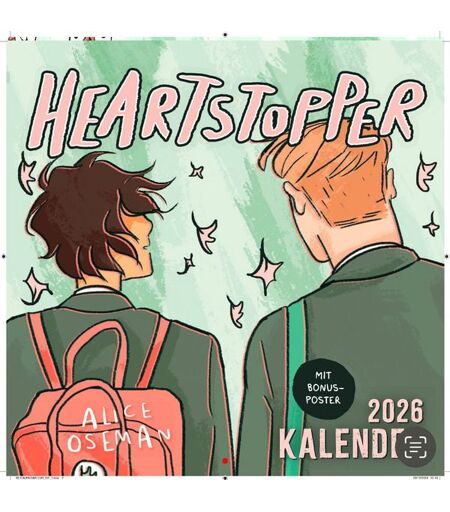 > 12-monatiger Wandkalender mit Bildern aus den Büchern > Enthält zusätzlich ein farbiges Heartstopper-Poster > Heartstopper hat eine riesige Fan-Community Entdecken Sie von Januar bis Dezember 2026 die Liebe und genießen Sie das Leben mit diesem Wandkalender mit Bildern aus Alice Osemans großartiger Graphic-Novel-Reihe Heartstopper! Der Wandkalender holt Charlie Spring, Nick Nelson und weitere Figuren aus der beliebten Netflix-Serie in Ihr Zuhause – sogar deren Geburtstage sind bereits eingetragen! Ein Must-Have für alle Fans! ...
