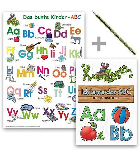Helga Momm - Das bunte Kinder-ABC - Set in Druckschrift: Lernposter DINA 4 laminiert + Schreiblernheft DINA 5 auf 120g/m² Zeichenkarton + Staedler Bleistift - Preis vom 18.09.2025 05:07:49 h
