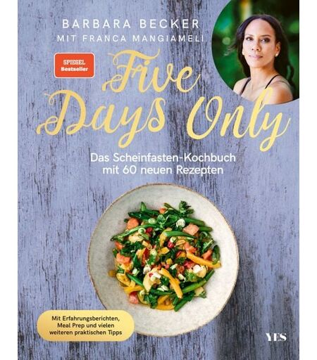 Dieses Kochbuch der beiden Erfolgsautorinnen Barbara Becker und Franca Mangiameli ist die ideale Ergänzung zum Platz-1-SPIEGEL-Bestseller Five Days Only. Die Revolution des Fastens. Five Days Only, kurz 5DO, ist ein fünftägiges Scheinfasten, das dem Körper vortäuscht, er würde fasten, obwohl man täglich mehrere Mahlzeiten zu sich nimmt. Die leckeren Gerichte sind kalorien-, eiweiß- und kohlenhydratarm – ein Nährstoffmix, den die Zellen nicht als »Nahrung« erkennen. Das Fastenprogramm reinigt die Zellen, regeneriert und wirkt wie eine Verjüngungskur von innen. 5DO ist aber nicht nur eine innovative Better-Aging-Strategie, sondern auch eine unschlagbare Abnehmformel, mit der man in fünf Tagen bis zu vier Kilo Gewicht verliert, gefährliches Bauchfett loswird und die Stoffwechselgesundheit verbessert. Das Kochbuch enthält 60 neue, nährwertoptimierte, vegane Rezepte, die 5DO zu einem kulinarischen Genuss machen. Die Rezepte sind einfach und schnell vor- und zuzubereiten, schließlich möchte keiner beim Fasten stundenlang in der Küche stehen. Praktische Tipps zur Umsetzung, etwa zu Meal Prep, Resteverwertung, aber auch zur Vereinbarkeit von 5DO mit Beruf oder Familie, sowie inspirierende und motivierende Erfahrungs- und Erfolgsgeschichten runden diesen einzigartigen Ratgeber ab. ...