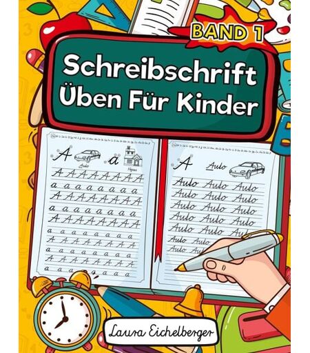 "Ihr Kind ist bereit, das Schreiben in Schreibschrift zu lernen, und Sie möchten es bestmöglich dabei unterstützen? Dann ist ""Schreibschrift Üben Für Kinder"" genau das Richtige für Sie! Das Schreiben ist eine der wichtigsten Fähigkeiten, die Kinder im Grundschulalter erwerben. Begonnen wird meist mit der klassischen Druckschrift, später folgt dann die Schreibschrift. Letztere stellt für viele Kinder eine besondere Herausforderung dar. Schließlich erfordert die Umstellung ein Umdenken und gerade Schüler, die sich mit der Feinmotorik schwer tun, kommen an ihre Grenzen. ""Schreibschrift Üben Für Kinder"" hilft dabei, diese Grenzen auf altersgerechte Weise zu durchbrechen, und bringt Schülern die Schreibschrift Schritt für Schritt näher. Auf übersichtlich strukturierten Seiten führt das Übungsheft von Aa bis Zz durch alle Buchstaben des Alphabets. Der Lernprozess wird dabei folgendermaßen angeleitet: Phase 1 Im ersten Schritt soll der jeweilige Buchstabe lediglich nachgefahren werden. Praktische Pfeile zeigen Ihrem Kind die richtige Schwungrichtung, sodass Missverständnisse quasi ausgeschlossen sind und gewährleistet ist, dass Ihr Kind sich das Schreiben der Buchstaben von vornherein korrekt aneignet. Phase 2 Anschließend wird Ihr Kind dazu angeregt, den gerade kennengelernten Buchstaben frei und selbstständig zu schreiben. Hilfslinien unterstützen es dabei, die passende Höhe einzuschätzen. Phase 3 Zu guter Letzt lädt eine separate Seite dazu ein, sich an einem ganzen Wort, das selbstverständlich den jeweiligen Buchstaben enthält, zu versuchen. So lernt Ihr Kind, wie die Buchstaben miteinander zu verbinden sind. Liebevoll gestaltete, kindgerechte Illustrationen, die zu den erlernten Worten passen, verbildlichen das Geschriebene und können natürlich auch ausgemalt werden. Die gleichbleibende Struktur des Heftes erleichtert Ihrem Kind den Lernprozess. Es wird zunehmend sicherer und kann immer wieder Fortschritte und Erfolge erleben. Durch die regelmäßige Übung schult es zudem seine Konzentration, seine Feinmotorik und seine Augen-Hand-Koordination. Das Wichtigste auf einen Blick Geeignet für Kinder im Grundschulalter Vermittelt die Buchstaben von Aa bis Zz in Schreibschrift Lehrt das Schreiben ganzer Worte in Schreibschrift Sinnvoll strukturiert und liebevoll gestaltet Fördert die Konzentration, die Feinmotorik und die Augen-Hand-Koordination Kann als Selbstlernheft oder begleitend zum Lernen der Schreibschrift in der Schule eingesetzt werden Mit ""Schreibschrift Üben Für Kinder"" kann Ihr Kind seine Fähigkeiten in seinem eigenen Tempo erweitern und erfahren, wie motivierend das Lernen sein kann! " ...