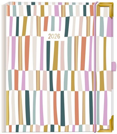"Ein eleganter Premium-Terminplaner für 2026 mit vielen Extras Dieser Terminplaner ist ein absolutes Multitalent und bezaubert durch sein besonders elegantes Design. Jede Kalenderwoche wird übersichtlich auf einer Doppelseite dargestellt und das Verschlussgummi hält Zettel, Quittungen und Notizen immer fest zusammen. Eine Stift-Schlaufe, Falttasche und ein Satin-Lesezeichenband sorgen zusätzlich für Ordnung. Dekorative Goldkappen an den Cover-Ecken verhindern die vorzeitige Abnutzung. Diverse Mitmach-Elemente und Aktionsseiten wie To-Do-Listen, Geburtstagskalender und Rezeptseiten sorgen für gute Laune und machen diesen Kalender zu einem echten Premium-Planer. Dank einer Jahres- & Monatsvorschau auf einer Seite lässt sich das Jahr 2026 optimal planen. • Großer Terminplaner mit versteckter Spiralbindung, Hardcover-Umschlag, Satin-Lesezeichen und Stift-Schlaufe (Format: 17 x 20,5 cm) • 224 Seiten + Stickerbogen bieten jede Menge Platz für Termine, Notizen und alles andere ""Merk-Würdige"" • Diverse Mitmach-Elemente und Aktionsseiten wie To-Do-Listen, Geburtstagskalender oder Rezeptseiten sorgen für gute Laune • Schulferien (für D und A) und Feiertage (für D, A und CH) sind eingetragen " ...