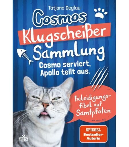 Krallenscharfe Sprüche aus dem Universum von Apollo & Cosmo – schonungslos, übertrieben, böse! Fast 1 Million Follower auf Social Media wissen: Bei Apollo & Cosmo wird geschnurrt, aber nicht geschleimt – und Cosmo ist der Chef im Kratzbaum. Nach dem Bestseller-Erfolg „Total verkatert – Katzen-Knigge mit Apollo & Cosmo“ kommt jetzt mit der Beleidigungsfibel auf Samtpfoten ein ganzer Napf voller Sarkasmus und Provokation. Zwischen Katzenklo-Philosophie und Couchkratzpoesie serviert Cosmo dir alles, um den Alltag mit einem schiefen Grinsen zu überleben: Sprüche, die so sitzen wie ein Katzenhintern im frisch gewaschenen Wäschekorb Kratzbürstige Witze aus Katzensicht Die fiesesten Beleidigungen, um deine Feinde in die Flucht zu schlagen Die lustigsten Sprüche, für die deine Freunde dich feiern werden Seltsames und Absurdes, das nur Cosmo selbst versteht Und dazu: Geheime Einblicke in Apollos Leben – denn Cosmo kann einfach nicht länger schweigen Cosmos Klugscheißer-Sammlung ist definitiv nichts für zartbesaitete Zweibeiner – genau deshalb ein Muss für alle, die verrückte Katzen mit scharfzüngigem Humor lieben und sich selbst nicht so ernst nehmen. Ein geniales Geschenk für Katzenfans und Follower von Apollo & Cosmo – oder du behältst es einfach selbst. Wie, du weißt nicht, was du jetzt tun sollst? Greif zu, bevor Cosmo es sich anders überlegt! Achtung: Dieses Buch ist nicht stubenrein und kann für unkontrollierte Lachkrämpfe sorgen. ...