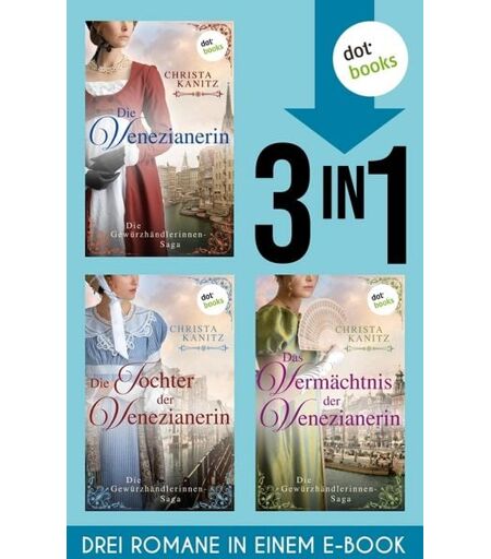 Nichts ist gefährlicher als eine starke Fraü... DIE VENEZIANERIN: Venedig, 1815. Die stolze Silvana Iserbrook wird gezwungen, mit ihren Kindern ins ferne Hamburg zu ziehen, die Heimat ihres verstorbenen Mannes. Als Nachfolgerin des großen Patriarchen Justus Iserbrook soll sie dessen Gewürzimperium weiterführen - nicht ahnend, welchen erbitterten Gegner sie in Robert Iserbrook finden wird, dem jüngeren Bruder ihres Mannes und schwarzen Schaf der Familie ... DIE TOCHTER DER VENEZIANERIN: Hamburg, 1830. Während Silvana die Geschicke der Gewürzdynastie mit fester Hand führt, kann sie nicht verhindern, dass ein dunkler Schatten auf ihre Kinder fällt: Ihre Tochter Theresa droht, an ihrem gebrochenen Herzen zu verzweifeln. Zur gleichen Zeit kehrt Silvanas verschollener Sohn Lukas zurück, an seiner Seite eine schöne junge Frau - aber bringt diese den Niedergang der Familie mit sich? DAS VERMÄCHTNIS DER VENEZIANERIN: 1855. Nach vielen Jahren als Matriarchin der hanseatischen Gewürzdynastie will Silvana Iserbrook endlich wieder nach Venedig zurückkehren. Aber ist ihre Tochter Theresa wirklich schon bereit, in ihre Fußstapfen zu treten? Zudem hat die Neujahrsflut für das Unternehmen verheerende Folgen - und dann wird Theresa sogar aus den eigenen Reihen angegriffen¿... Der mitreißende Historien-Sammelband »Die Gewürzhändlerinnen-Saga« von Christa Kanitz wird alle Fans von Miriam Georg und Anja Marschall begeistern. ...