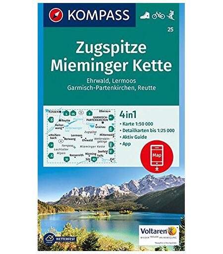 KOMPASS-Karten GmbH - Zugspitze, Mieminger Kette, Ehrwald, Lermoos, Garmisch-Partenkirchen, Reutte: 4in1 Wanderkarte 1:50000 mit Aktiv Guide und Detailkarten inklusive ... Skitouren. (KOMPASS-Wanderkarten, Band 25) - Preis vom 18.09.2025 05:07:49 h