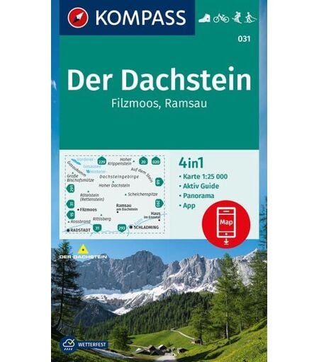 Wanderkarte Der Dachstein, Ramsau, Filzmoos : Die Karte für Wandern, Fahrradfahren und viele weitere Aktivitäten in der Natur Kompass Wanderkarten sind einfach zu lesen und beinhalten trotzdem alle Informationen, die man für eine perfekte Wandertour , eine Fahrradrunde oder einen Ausflug benötigt. Sie bilden die Natur im passenden Maßstab ab. Unzählige zusätzliche Informationen werden vom Kartografie-Team laufend geprüft und erweitert. Die präzise Kartografie beinhaltet alle offiziellen Wanderwege mit Namen und Wegnummer (wie Fernwege), Fahrradwege (mit Trails), Klettersteige, Gasthäuser und Hütten, Parkplätze, Bus & Bahn, Skitouren und Loipen, Quellen, Badeplätze und vieles mehr. Das macht die Karte ideal zum Entdecken neuer Ziele, zum Planen von Touren und zum Orientieren unterwegs. Ein intuitives Kartenbild der Landschaft entsteht durch die abgebildete Vegetation, Höhenlinien, Felszeichnung sowie der Schummerung (Schattenwurf) der Berge. Ausstattung der Wanderkarte Der Dachstein, Ramsau, Filzmoos: Maßstab 1:25.000 : 1cm auf der Hauptkarte entspricht 250m in der Natur Dank des reiß- und wetterfesten Papiers überlebt die Karte jedes Wetter Kartenausschnitt auch offline in der Kompass-Wanderkarten-App nutzbar Aktiv Guide : Zusatzheft mit Detailkarten im Maßstab von 1:25.000 Über die Region: Der Dachstein, Ramsau, Filzmoos: Der Dachstein, ein markantes Wahrzeichen mit seinem eindrucksvollen Gletscher, dominiert die Region. Ramsau bietet ideale Bedingungen für Alpinisten und Familien, während Filzmoos mit seiner charmanten Atmosphäre und den traditionellen Almhütten verzaubert. Wanderwege reichen von leichten Spaziergängen bis zu anspruchsvollen Hochgebirgstouren. Auf 2.700 Metern besticht der Dachstein als höchster Berg der Steiermark mit einer unvergleichlichen Bergkulisse und einem fantastischen Panorama weit über die Berggipfel Österreichs bis nach Tschechien und Slowenien. Die Auffahrt mit der Dachstein Panorama-Seilbahn ist schon ein Erlebnis für sich. Im Dachstein Eispalast erhält man Einblicke in die Tiefen des Gletschers. Die Orte Ramsau, Schladming und Filzmoos sind besonders im Winter beliebte Ausflugsziele für Sportbegeisterte. ...