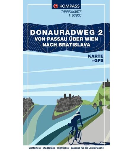 Kompass-Karten KOMPASS Fahrrad-Tourenkarte Donauradweg 2, von Passau über Wien nach Bratislava 1:50.000