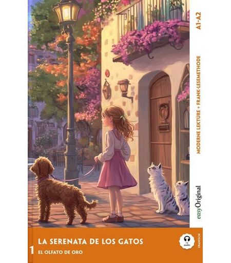 "Leseprobe: https://easyoriginal.com/leseproben/DS25.pdf Innovative Frank-Lesemethode: https://easyoriginal.com/frank-lesemethode/ La Serenata de los Gatos — Das Katzenkonzert In der ruhigen Küstenstadt Costa del Sol geschieht etwas Seltsames: Jede Nacht versammeln sich unzählige Katzen auf der Plaza Mayor und stimmen ein geheimnisvolles Konzert an. Niemand weiß, warum – und die Bewohner sind verzweifelt, weil sie kein Auge mehr zutun können! Lucía, ein aufgewecktes zehnjähriges Mädchen mit detektivischem Gespür, macht sich zusammen mit ihrem treuen Hund Trufo und ihrem besten Freund Pablo auf, das Rätsel zu lösen. Ihre Spur führt sie durch enge Gassen, in eine Tierhandlung und schließlich hoch zum alten Leuchtturm. Doch was steckt wirklich hinter dem sonderbaren Verhalten der Katzen? Ein spannendes Abenteuer voller Freundschaft, cleverer Entdeckungen und einem Hauch von Magie – perfekt für junge Leserinnen und Leser, die gerne Geheimnisse lüften! Entdecken Sie eine effektive Methode zum Spanischlernen mit unserer Reihe ""Frank-Lesemethode: Moderne Lektüre A1-A2""! Diese innovative Sammlung bietet Texte, die ursprünglich für B1-Niveau verfasst und dann speziell für A1-A2 Lernende aufbereitet wurden. Besonderheiten der Reihe: • Ursprünglich für B1-Niveau geschriebene, spannende Geschichten • Sorgfältig für A1-A2 Lernende angepasst, ohne den Text zu kürzen Zweisprachige Texte mit nahtlos integrierter Unterstützung: • Spanischer Originaltext • Deutsche Übersetzung und Erklärungen direkt im Text in Klammern • Übersetzung und Kommentare fügen sich natürlich in den Lesefluss ein • Reichhaltiger B1-Wortschatz, zugänglich gemacht für A1-A2 Niveau Vorteile dieser Methode für A1-A2 Lernende: • Zugang zu authentischen B1-Texten ohne Überforderung • Erweiterung des Wortschatzes und der Grammatikkenntnisse im Kontext • Verbesserung des Leseverständnisses durch gezielte Unterstützung • Steigerung der Motivation durch Bewältigung anspruchsvoller Texte Jedes Buch ermöglicht Ihnen: • Ihr Leseverständnis mit vollständigen B1-Texten zu verbessern • Ihren Wortschatz deutlich über das A1-A2 Niveau hinaus zu erweitern • Komplexere grammatikalische Strukturen in einem verständlichen Kontext kennenzulernen • Tiefere Einblicke in die spanische Kultur zu gewinnen Perfekt für: • A1-A2 Lernende, die ihr Spanisch effektiv verbessern möchten • Spanischlernende, die von authentischen Texten profitieren wollen • Leser, die unterhaltsame und zugleich lehrreiche Lektüre suchen Diese Reihe bietet Ihnen die einzigartige Möglichkeit, vollständige Texte auf B1-Niveau zu lesen, die speziell für Ihr Lernniveau aufbereitet wurden. Erleben Sie, wie Sie mit jedem Buch Ihre Spanischkenntnisse spürbar verbessern!" ...