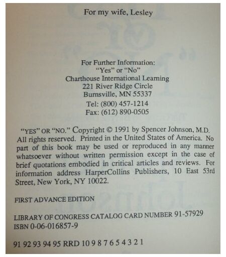 Binding : Gebundene Ausgabe, Label : HarperCollins, Publisher : HarperCollins, NumberOfItems : 1, PackageQuantity : 1, medium : Gebundene Ausgabe, numberOfPages : 102, publicationDate : 1992-05-01, releaseDate : 1992-05-01, authors : Spencer Johnson, ISBN : 0060168579 ...