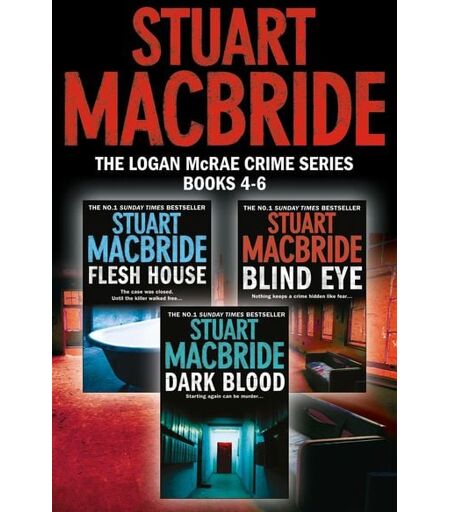 Books 4, 5 and 6 in the No.1 bestselling crime series by the award-winning Stuart MacBride. FLESH HOUSE: Twenty years ago 'The Flesher' was butchering people all over the UK - turning his victims into oven-ready joints - until Grampian's finest put him away. But eleven years later he was out on appeal. Now he's missing and people are dying again. DS Logan McRae is on the case, and twenty years of secrets and lies are being dragged into the light. Only one thing is certain - Aberdeen will never be the same again. BLIND EYE: Someone's preying on Aberdeen's growing Polish population. The pattern is always the same: men abandoned on building sites, barely alive, their eyes gouged out and the sockets burned. With the victims too scared to talk, Grampian Police is getting nowhere fast. The attacks are brutal, they keep on happening, and soon DS Logan McRae will have to decide how far he's prepared to bend the rules to get a result. DARK BLOOD: Richard Knox has served his time, so why shouldn't he be allowed to live wherever he wants? Yes, in the past he was a violent rapist, but he's seen the error of his ways. Found God. Wants to leave his dark past in Newcastle behind him and make a new start. Or so he says. Detective Sergeant Logan McRae isn't exactly thrilled to be part of the team helping Knox settle into his new Aberdeen home. He's even less thrilled to be stuck with DSI Danby from Northumbria Police - the man who put Knox behind bars for ten years - supposedly here to 'keep an eye on things'. Only things are about to go very, very wrong... ...