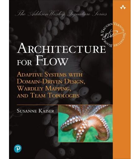 "Architecture for Flow: Designing Adaptive Socio-Technical Systems In today's rapidly evolving business landscape, the ability to adapt to change is not just advantageous--it's essential for survival. Architecture for Flow presents a groundbreaking holistic approach that integrates business strategy, software architecture, and team organization to create adaptive socio-technical systems optimized for continuous change and feedback. By combining Wardley Mapping, Domain-Driven Design, and Team Topologies, this book offers a comprehensive framework for organizations to anticipate change, unlock blockers to flow, and maintain competitive advantage in an increasingly uncertain world. The book addresses the fundamental challenge facing modern organizations: How to design and build adaptive systems that thrive amid constant change. Drawing from historical examples of companies that failed to adapt--like Blockbuster, Kodak, and Nokia--it emphasizes that optimization requires treating organizations as socio-technical systems where social and technical aspects are aligned and designed together. The Architecture for Flow approach provides practical tools and methodologies for designing systems that can evolve continuously while delivering sustainable value. Key Topics Covered: Business Strategy with Wardley Mapping: Understanding competitive landscapes and anticipating change through strategic visualization Strategic Domain-Driven Design: Analyzing problem domains and designing modular solution spaces aligned with business needs Tactical Domain-Driven Design: Implementing domain models that keep core business logic decoupled from external changes Team Topologies: Optimizing team structures and interactions to reduce bottlenecks and enhance flow Architecture for Flow Canvas: A structured approach to combine all three perspectives for assessment and future planning Legacy System Evolution: Practical guidance for transforming monolithic systems into adaptive architectures Continuous Improvement: Fostering organizational culture that sustains flow and embraces future change In a world where ""the only constant is change,"" organizations must build systems that can adapt quickly and effectively. This book offers a timely and essential perspective that goes beyond local optimization to address systemic improvement. By aligning business strategy, software architecture, and team organization, this guide provides leaders with the tools to not only build the right thing but to build the thing right. For technical leaders, architects, and managers facing the challenges of continuous adaptation, the architecture for flow framework offers a path forward that balances effectiveness with efficiency, ensuring organizations can deliver sustainable value in an increasingly complex and rapidly changing world. " ...