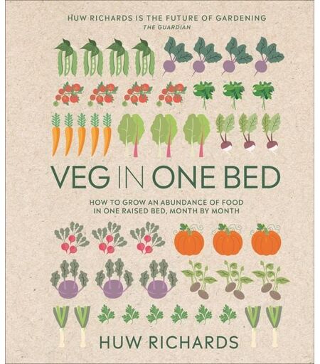 "Grow your own vegetable garden with this practical, straightforward gardening guide. There is nothing more fulfilling than growing your own home produce. You don't have to be a seasoned gardener to produce a healthy, flourishing garden - all you need is a few seeds, water, sunlight, good advice and patience! In just one raised bed, author Huw Richards, shows you exactly how to grow vegetables organically, abundantly and inexpensively so you have something to harvest every month of the year. Here's what you'll find inside: - Month-by-month guide to what to do and how to do it, including what pests to look out for, and what can be harvested. - Covers first year in detail, with the final chapter on 'Next Steps' providing suggestions of what to do in years two and three. - Illustrations show you what the bed should look like month to month. - Windowsill planting ensures early success cultivating plants before they are transferred into the bed. - Maintenance sections ensure readers know how to keep their plants (and raised bed) healthy each month. - Includes instructions on assessing your site and building a 4x10ft (1.2x3m) raised bed. - Alternative vegetables are recommended, allowing readers to tailor their bed to their taste. - Plans chart growing season for different circumstances: cool climate, low rainfall, low effort, salad bed, winter bed, herbs and edible flowers. Month by month, discover what you need to do and how to do it. Try becoming more self-sufficient in your allotment, a small garden, or even on a roof terrace. Veg In One Bed shows you that you can have a small thriving garden and still be able to maintain it, yielding fresh vegetables all year round. Learn what to do each month on your windowsill, where you'll raise seedlings, and in your raised bed, where your plants will grow to maturity. Everything is explained in clear, illustrated steps: building your bed, growing from seed, planting, feeding, and harvesting. This gardening book not only guides you through the whole process of building your raised bed through to harvesting your vegetables but also provides sustainable gardening practices, which will resonate with all gardeners committed to protecting our planet. This makes for the perfect book for new gardeners who want to grow their own produce, as well as the new generation of gardeners who are seeking a gardening guru of their own age. Veg in One Bed goes beyond the inspiring demonstrations on his YouTube channel ""Huw Richards - Grow Food Organically"". In this book he organises all his ideas and suggestions into a blueprint for growing your own vegetables month by month. Little growing experience? Only a small space? No matter - with Veg in One Bed, you can still eat food you have grown all through the year. " ...