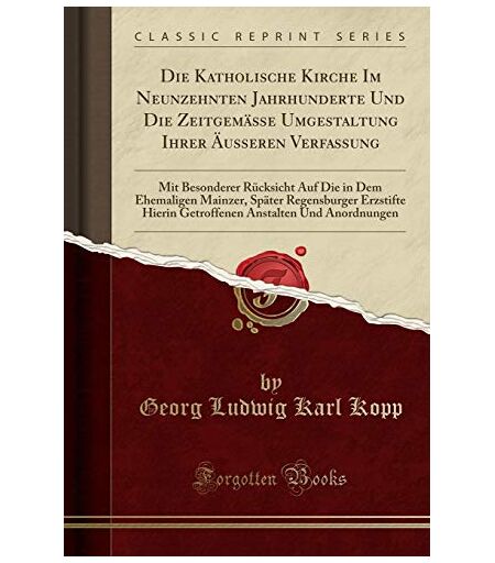 Kopp, Georg Ludwig Karl - Die Katholische Kirche Im Neunzehnten Jahrhunderte Und Die Zeitgemäße Umgestaltung Ihrer Äusseren Verfassung: Mit Besonderer Rücksicht Auf Die in Dem ... Hierin Getroffenen Anstalten Und Anordnungen - Preis vom 18.09.2025 05:07:4
