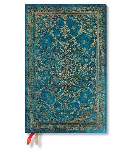 "The 1688 edition of L’office de la Semaine Sainte, a Latin liturgical book, was protected by a gold-plated leather binding. Reproduced on our Azure journal with a vibrant blue background, the antique design features an elaborate gilt-edged tendril motif. Date range: July 2025 - December 2026 Size: Width: 135mm (5½"") x Height: 210mm (8¼"") x Depth: 15mm (½"") Interior: Vertical GSM (paper weight): 80 Cover: Softcover Pouch Type: Back Cover Pouch " ...