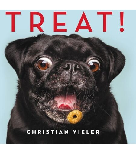A collection of photographs of dogs anticipating or catching a treat. ...