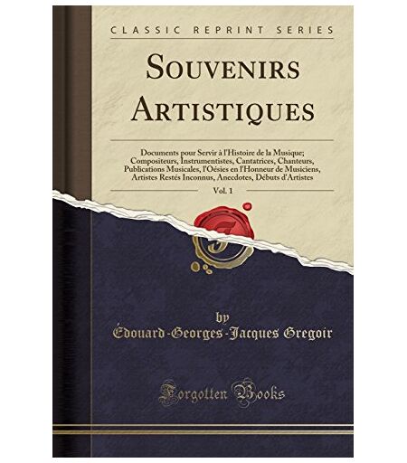 Gregoir, Edouard Georges Jacques - Souvenirs Artistiques, Vol. 1: Documents pour Servir à l'Histoire de la Musique; Compositeurs, Instrumentistes, Cantatrices, Chanteurs, Publications ... Restés Inconnus, Anecdotes, Débuts d'Artistes - Preis vom 18.09.202