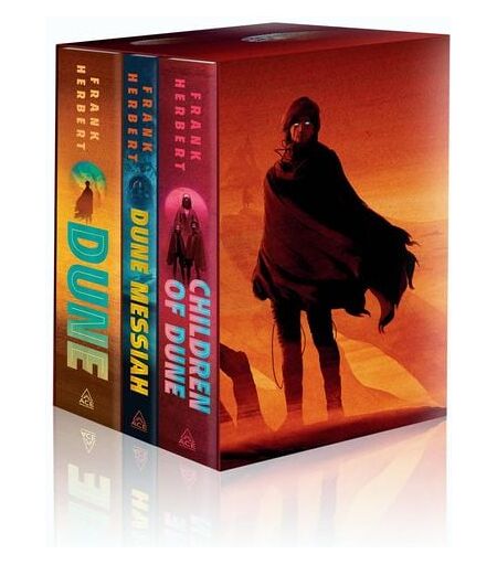 TAKE HOME THE ULTIMATE COLLECTOR'S BOXED SET THAT INCLUDES DELUXE HARDCOVER EDITIONS OF DUNE, DUNE MESSIAH, AND CHILDREN OF DUNE—THE FIRST THREE NOVELS IN FRANK HERBERT'S BESTSELLING DUNE SAGA. This deluxe boxed set includes a gorgeous slipcase with original art and exquisitely designed hardcover editions of each novel, featuring: • Iconic new covers • Stained edges • Stamped and foiled cases featuring quotes from the Litany Against Fear • Fully illustrated endpapers • An illustrated poster on the interior of each jacket Set on the planet Arrakis, Frank Herbert's epic Dune saga tells the story of Paul Atreides, heir to a noble family tasked with ruling an inhospitable world where the only thing of value is the “spice” melange, a drug capable of extending life and enhancing consciousness. When House Atreides is betrayed, the destruction will set Paul and his family on a journey towards a destiny beyond imagination, one that will bring to fruition humankind’s most ancient and unattainable dream.... ...