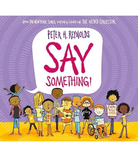 """A motivational must-have for every collection."" - School Library Journal A New York Times Bestseller The world needs your voice. If you have a brilliant idea... say something! If you see an injustice... say something! In this empowering new picture book, beloved author Peter H. Reynolds explores the many ways that a single voice can make a difference. Each of us, each and every day, have the chance to say something : with our actions, our words, and our voices. Perfect for little activists everywhere, this timely story reminds readers of the undeniable importance and power of their voice. There are so many ways to tell the world who you are... what you are thinking... and what you believe. And how you'll make it better. The time is now: SAY SOMETHING! From the creator of the New York Times bestseller The Word Collector comes an empowering story about finding your voice, and using it to make the world a better place. An empowering encouragement for little ones to use their voice and actions to see change happen, help other, express gratitude and love and take a stand. Review Praise for Say Something: "" Reynolds shows readers a variety of ways a voice can be used, listened to, and heard to make a difference... Reynolds' hand-lettered text, set in white text bubbles against a mix of bright backdrop colors and patterns, deftly works with before-and-after illustrations to show the change that children can effect. This book's encouragement to kids to find their voices can also be used to start a conversation about how they can make a difference in their world"". - Kirkus Reviews Praise for The Word Collector: ""Peter H. Reynolds always manages to walk a delicate line with his books - make that a couple lines: weighty but not weighed down. Universal yet kid-centric. No easy feat"". - Travis Jonker, School Library Journal "" Capture[s] the beauty of words and the wonder of sharing them with others... enchanting"". - Kirkus Reviews ""Packs a powerful punch... capture[s] both the joy of learning and the power of kindness"". -- School Library Journal About the Author Peter H. Reynolds is a New York Times bestselling author and illustrator of many books for children, including The Dot, I Am Human, Happy Dreamer, The Word Collector, Say Something!, and Be You! His books have been translated into over 25 languages around the globe and are celebrated worldwide. In 1996, he founded FableVision with his brother, Paul, as a social change agency to help create stories that matter, stories that move. He lives in Dedham, Massachusetts, with his family. Visit him online at peterhreynolds.com. " ...