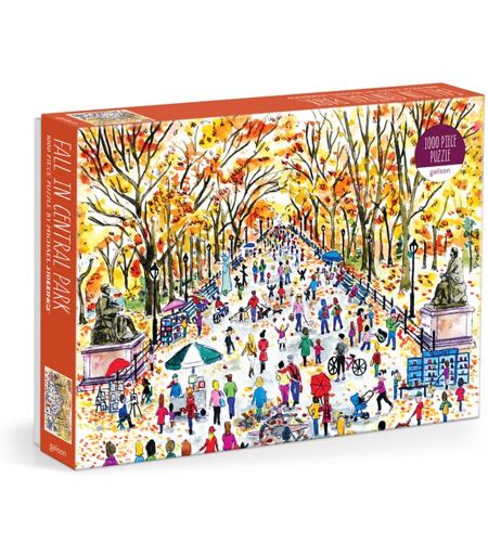 "Bestselling artist Michael Storrings captures the beauty of the leaves changing on the 18,000 trees of Central Park as they hit their peak of autumn's most vibrant colors. Michael StorringsFall in Central Park 1000 Piece Puzzlefrom Galison is packaged in matte-finish sturdy box, perfect for gifting, reuse, and storage. - 1000 pieces, Random cut - Box Size: 11.25 x 8.25 x 2"", 86 x 210 x 51 mm, Puzzle Size: 27 x 20"", 508 x 686 mm. - Includes Color Insert with Puzzle Image - Virtually No Puzzle Dust - Puzzle greyboard contains 90% recycled paper. Printed with nontoxic inks. " ...