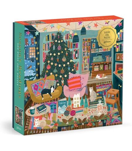 500 PIECE PUZZLE – Season's Readings 500 Piece Foil Puzzle by Galison features a cozy Christmas scene at the local bookshop, enhanced with sparkling gold foil details. This puzzle is just the right level of challenge for the whole family to join in on for hours of puzzling fun! The box includes an insert with the full puzzle image for reference. BRIGHT AND BOLD ARTWORK – This puzzle features a lovely bookshop at Christmas time adorned with holiday comforts. Puzzle lovers will appreciate all the interesting details as they piece together the puzzle, creating a beautiful display that will add a touch of elegance to any room this holiday season. PERFECT FOR GIFTING – Whether you're looking for a fun activity for a rainy day or a unique gift for a loved one, this puzzle is sure to impress! With its intricate details and challenging design, this puzzle is perfect for anyone who loves Christmas or books. The puzzle's high quality artwork of a Christmas bookshop makes it a beautiful and eye-catching addition to any home or office. EASY HANDLING – The 500 ribbon cut puzzle pieces are thick and sturdy. The completed puzzle measures 20” x 20”. Puzzle greyboard contains 90% recycled paper. Printed with nontoxic inks. GALISON – Since 1979, our vision at Galison has been to inspire people by bringing art into daily life with home office supplies, home décor, stationery, puzzles, and games. ...