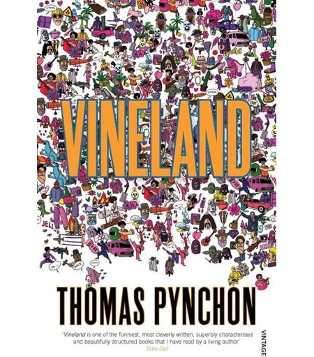 "Vineland, a zone of blessed anarchy in northern California, is the last refuge of hippiedom, a culture devastated by the sobriety epidemic, Reaganomics, and the Tube. Here, in an Orwellian 1984, Zoyd Wheeler and his daughter Prairie search for Prairie's long-lost mother, a Sixties radical who ran off with a narc. Vineland is vintage Pynchon, full of quasi-allegorical characters, elaborate unresolved subplots, corny songs (""Floozy with an Uzi""), movie spoofs (Pee-wee Herman in The Robert Musil Story), and illicit sex (including a macho variation on the infamous sportscar scene in V.). " ...