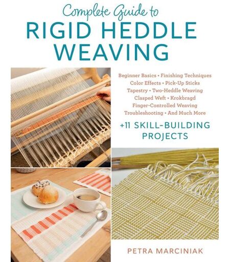 Unlock the full potential of your rigid heddle loom with The Complete Guide to Rigid Heddle Weaving, featuring expert tips and 11 engaging projects that will take your weaving skills from beginner to mastery! Whether you have just purchased your first rigid heddle loom or have been weaving for years, The Complete Guide to Rigid Heddle Weaving will have the answers and instructions for your small loom weaving questions and explorations. All the basics from measuring warp and weft to setting up the loom and troubleshooting common problems are covered. Detailed instructions and photo illustrations make it easy to follow along. The rigid heddle loom is a beginning weaver’s best friend, and you’ll soon be weaving like a pro! Already woven a few pieces and looking for a new challenge? There are so many new techniques to try, including tapestry, Saori, color effects, openwork, Krokbragd, and more. Learn to work with pick-up sticks and two heddles to add more than just plain weave to your repertoire. This is your guide to exploring the full range of capabilities of your favorite little loom. For hands-on practice and to try a new technique with ensured success, turn to the 11 sample projects. Each includes a complete materials list, set up notes, and step-by-step instructions. Make a zippered pouch using the clasped weft technique, dish towels in houndstooth, an openwork café curtain, Krokbragd coasters, a Saori wall hanging, and more. ...