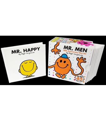 "It has been forty years since Adam Hargreaves asked his father, ""What does a tickle look like?"" That question inspired Roger Hargreaves to invent Mr. Tickle and all his friends in Mr. Men Land, and those quirky characters have sold millions of copies worldwide since. This anniversary edition box set comes with the first ten Mr. Men books in hardcover: Mr. Tickle, Mr. Greedy, Mr. Happy, Mr. Nosey, Mr. Sneeze, Mr. Bump, Mr. Snow, Mr. Messy, Mr. Topsy-Turvy, and Mr. Silly." ...