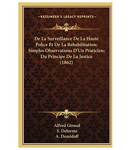 Alfred Giraud - De La Surveillance De La Haute Police Et De La Rehabilitation; Simples Observations D'Un Praticien; Du Principe De La Justice (1862) - Preis vom 18.09.2025 05:07:49 h