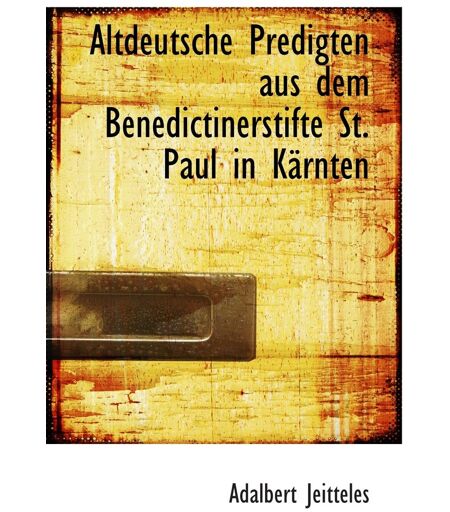 Binding : paperback, Label : Altdeutsche Predigten aus dem Benedictinerstifte St. Paul in Kärnten, medium : paperback, numberOfPages : 234, publicationDate : 2009-05-20, releaseDate : 2009-05-20, languages : english, ISBN : 111021944X ...