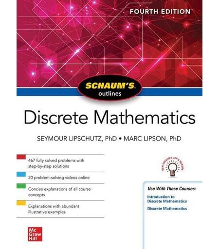 Study smarter and stay on top of your discrete mathematics course with the bestselling Schaum's Outline-now with the NEW Schaum's app and website! Schaum's Outline of Discrete Mathematics, Fourth Edition is the go-to study guide for more than 115,000 math majors and first- and second-year university students taking basic computer science courses. With an outline format that facilitates quick and easy review, Schaum's Outline of Discrete Mathematics, Fourth Edition helps you understand basic concepts and get the extra practice you need to excel in these courses. Coverage includes set theory; relations; functions and algorithms; logic and propositional calculus; techniques of counting; advanced counting techniques, recursion; probability; graph theory; directed graphs; binary trees; properties of the integers; languages, automata, machines; finite state machines and Turning machines; ordered sets and lattices, and Boolean algebra. Features . NEW to this edition: the new Schaum's app and website! . NEW to this edition: 20 NEW problem-solving videos online . 467 solved problems, and hundreds of additional practice problems . Outline format to provide a concise guide to the standard college course in discrete mathematics . Clear, concise explanations of discrete mathematics concepts . Expanded coverage of logic, the rules of inference and basic types of proofs in mathematical reasoning . Increased emphasis on discrete probability and aspects of probability theory, and greater accessibility to counting techniques. . Logic chapter emphasizes the IF-THEN and IF-THEN-ELSE sequencing that occurs in computer programming . Computer arithmetic chapter covers binary and hexagon addition and multiplication . Cryptology chapter includes substitution and RSA method . Supports these major texts: Discrete Mathematics and Its Applications (Rosen), and Discrete Mathematics (Epp) . Appropriate for the following courses: Introductory Discrete Mathematics and Discrete Mathematics ...