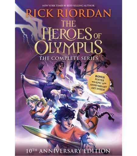 All five books in the #1 New York Times bestselling Heroes of Olympus saga by Rick Riordan in a paperback boxed set of heroic proportions. From The Lost Hero to the Blood of Olympus, this collection of Rick Riordan's mega-bestselling series will be a go-to gift for readers who have finished the Percy Jackson and the Olympians books. Told from multiple points of view, Percy Jackson's adventures continue and escalate as he teams up with Greek and Roman demigods to stop Gaea the earth mother from destroying the world. Combines Greek and Roman mythology with modern-day characters kids will relate to and root for. Enjoyed the world over by readers ages 8-80. The hefty package also includes a free poster of the Prophecy of Seven. > ...