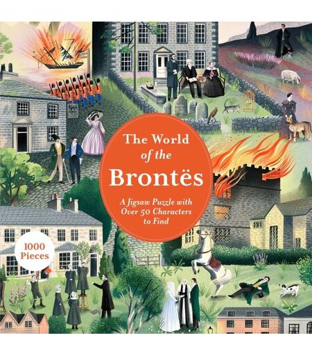 "A 1000-PIECE PUZZLE inspired by the life and works of the Brontë family. The perfect challenge for book lovers - or anyone who loves a good jigsaw. ALL YOUR FAVOURITE CHARACTERS can be found hidden in this detailed puzzle, as well as some real-life historical figures who played a part in their lives. INCLUDES A PULL-OUT POSTER identifying all the characters and telling their tales ""THE WORLD OF..."" JIGSAWS are a fun way of celebrating the lives and works of creative greats. Also available in the series: The World of Frida Kahlo, The World of Shakespeare, The World of Jane Austen SCREEN-FREE FUN from one of the world's leading publishers of books and gifts on the creative arts. Laurence King Publishing works with some of the world's best illustrators, designers, artists, and photographers to create beautifully produced books and gifts which are acclaimed for their inventiveness, beautiful design and authoritative texts. HIGH QUALITY JIGSAW PUZZLE comes in a sturdy box measuring 267x267 mm (10.5x10.5 in) with finished puzzle measuring 680x485mm (26.75x19 in) Enter the world of the Brontës with this 1000-piece jigsaw puzzle. Travel across the blustery Yorkshire moors and into the dark, gloomy schoolrooms and weathered stone buildings of nineteenth-century England to spot Cathy and Heathcliff at Wuthering Heights, Jane and Mr Rochester getting married, and a host of other fictional and real-life characters while you build the puzzle. Includes a fold-out poster that highlights characters, locations and key moments. " ...