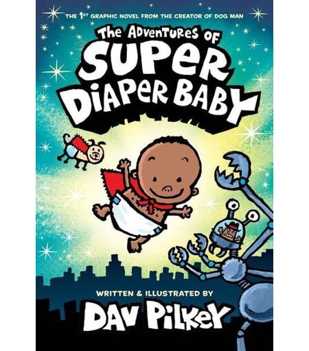 "The Adventures of Super Diaper Baby, the first children's graphic novel by the global #1 bestselling author and award-winning artist Dav Pilkey, is now in full color! In this all-new color version with updated spelling and grammar, Dav Pilkey brilliantly weaves a good-hearted, action-packed story that will inspire heroes of all ages. Super Diaper Baby is an actual baby called Billy who gains special superpowers along with his trusty companion, Diaper Dog. Our dynamic superhero's archenemy, Deputy Dangerous, wants to steal his powers and take over the planet. Will the diaper-wearing dynamo duo defeat the deputy, or is the entire Earth doomed? Bonus content includes How 2 Draws and a look behind the scenes at the creation of The Adventures of Super Diaper Baby, featuring pages from Dav Pilkey's sketchbook and more! With a special appearance by Captain Underpants, The Adventures of Super Diaper Baby is the hilarious graphic novel tale of a superhero who's faster than a speeding stroller and more powerful than diaper rash. For additional awesome, action-packed, inspiring escapades filled with creativity and imagination, read Dav Pilkey's Dog Man , Cat Kid Comic Club , Captain Underpants , and Dragon series. Also be sure to check out the two acclaimed major motion pictures: Dog Man and Captain Underpants: The First Epic Movie. ""Nearly 25 years ago, when I was working on the Captain Underpants books and before Dog Man was published, I wrote and illustrated my first graphic novel, The Adventures of Super Diaper Baby, created in the same style as how I imagined my 9-year-old characters George and Harold would've written and drawn the story. In this book, I included my early sketches, storyboard, notes about the editing process, and a behind-the-scenes look at how I painted the cover. In this new edition, George and Harold, who are now older, have gone back to add full color and edit their spelling mistakes. I'm excited that more readers will discover one of my favorite superhero characters I've created. He may be small in size, but he makes a big impact. My hope is that kids everywhere are inspired to write and draw their own original comics and continue to improve without worrying about being perfect."" -- Dog Man author and illustrator Dav Pilkey " ...