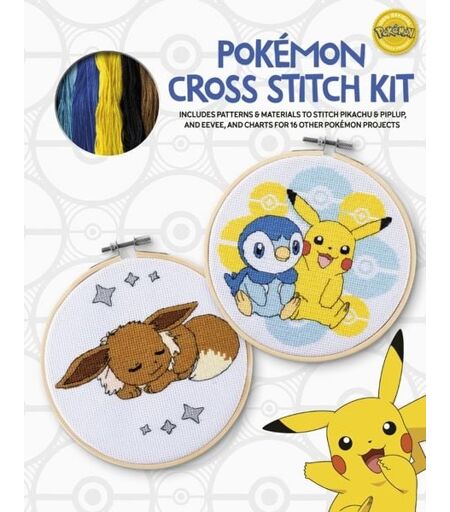 Cross stitch Pikachu, Piplup and Eevee with this Pokémon Cross Stitch Kit. With clear, easy-to-follow full-color charts, this kit gives you not only the instructions and patterns you need to stitch your favorite Pokémon, but also all the embroidery floss and fabric, and even a wooden embroidery hoop to frame your finished piece! This all-inclusive kit will take anyone-even a beginner-through the process right from the first steps. When you've finished, you'll have your very own cross-stitched Pokémon to display with pride. But that's not all! If once you've stitched the main designs and find you've been bitten by the cross stitch bug, the accompanying booklet contains patterns for 16 more Pokémon cross stitch designs, so you can work your way through them all. But beware! Stitching these designs is so much fun-the more you make, the more you'll want. And so will everyone else who sees them! Cross stitch fans will love stitching these patterns-for themselves, for kids, and for gifting-and every Pokémon fan will want one! The box contains: - 48-page book containing instructions and patterns - 2 pieces of Aida fabric to stitch on - Embroidery floss in the correct colors to stitch the two cover designs - Tapestry needle - Wooden embroidery hoop Author Maria Diaz is a cross stitch legend and a lifelong Pokémon fan. She combines both passions to perfection in this box that combines instruction with invention. Officially licensed by The Pokémon Company International. © 2023 Pokémon / Nintendo / Creatures / GAME FREAK ...