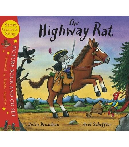 "The Highway Rat paperback picture book is now available with a high-quality audio CD for children to listen along. The Highway Rat rides along the highway stealing all the travellers' food. But a crafty duck and her mysterious sister soon put an end to his crooked ways! Brilliantly performed by award-winning actress, Imelda Staunton, the CD contains the full story with music, the Highway Rat Listening Game and the brand new ""Highway Rat"" song, which was written specially for this CD by Julia Donaldson. The Highway Rat animated film premiered on BBC Christmas 2017 The animated film of Tabby McTat stars voice artists including Jodie Whittaker (Doctor Who) as the narrator, Rob Brydon (Gavin and Stacey) as Fred, Sope Dirisu (Gangs of London) as Tabby McTat, alongside Cariad Lloyd, Joanna Scanlan and Susan Wokoma. Look out for Jonty Gentoo by Julia Donaldson and Axel Scheffler in 2024. " ...