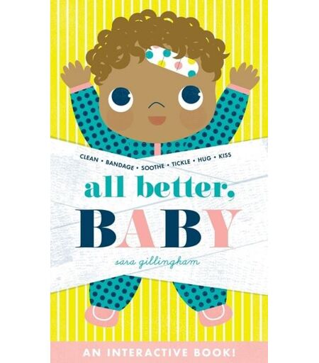 Make baby feel better with this interactive novelty book, featuring removable pieces, flaps, and touch surfaces. All Better, Baby! is an interactive novelty board book from award-winning children’s book author and illustrator Sara Gillingham that plays like a doll and reads like a gentle manual about how to soothe a baby. Sara Gillingham has incorporated real tactics for newborn care, giving the text an authenticity and purpose. Interactivities include putting a bandage on a scraped knee, rubbing ointment on an itchy bug bite, and more, and all are accompanied by tender, instructive narration. Perfect for soon-to-be older siblings or doll-crazy toddlers, this book encourages children to read while they play and practice empathy and care. ...